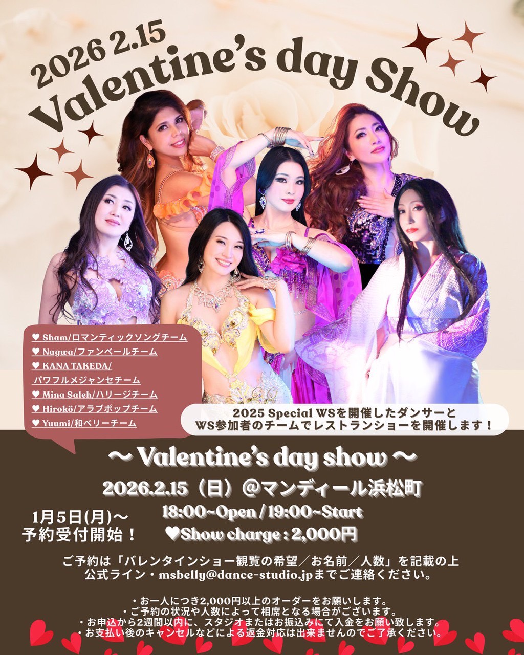 ご予約は「バレンタインショー観覧の希望/お名前/人数」を記載の上、公式ライン・msbelly@dance-studio.jpまでご連絡ください。