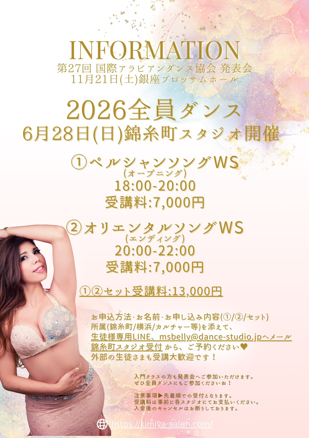 第27回 国際アラビアンダンス協会 発表会へ向けて、全員ダンスWSのお知らせです!